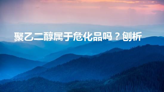 在化工、日化食品乃至医疗领域,聚二...