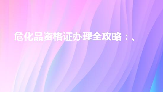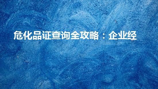 对于从事化工、仓储、运输相关领域的企业而言,获取危险化学品经营许可证(简称为危化品证)是合法开展业务...