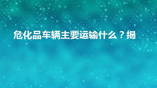 在现代化工产业链与基础设施建设飞速进步的今天,化学品的公路运输如同流动的“动脉”,不可或缺却又充满。...