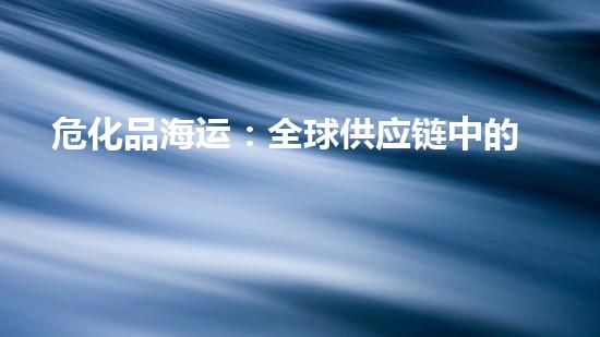 在全球化的经济格局下,危险化学品(危品)的海上运输是连接原材料产地、生产工厂与市场的生命线。从制药原...